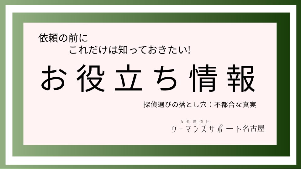 また、「特別な調査プラン」や「安心の成功報酬プラン」と謳いながら、具体的な内容を提示しない探偵社にも注意が必要です。特に調査料金の100%前払いを求める探偵社は絶対に避けてください。一度支払ったお金は戻ってこないと思った方が賢明です。